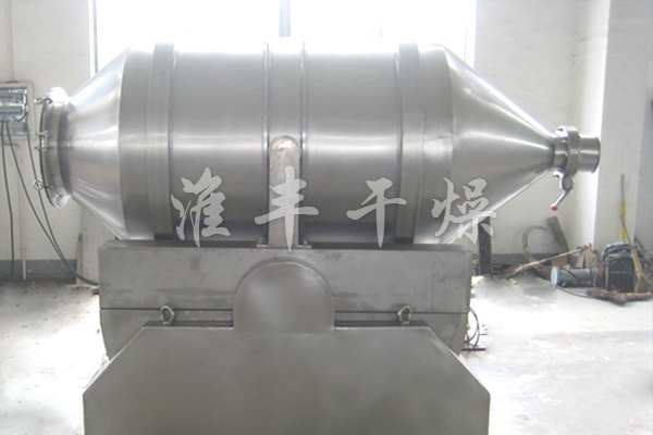 EYH 二維運動混合機的轉筒可同時進行二個運動,一個為轉筒的轉動,另一個為轉筒隨擺動架的擺動。被混合物料在轉筒內隨轉筒轉動、翻轉、混和的同時,又隨轉筒的擺動而發生左右來回的摻混運動,在這兩個運動的共同作用下,物料在短時間內獲得充分的混合。EYH二維混料機適合所有粉、粒狀物料的混合。