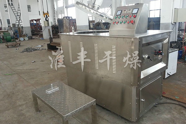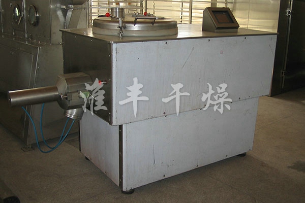粉體物料與粘合劑在圓筒形容器中由底部混合漿充分混合成濕潤(rùn)軟材,然后由側(cè)置的高速粉碎槳切割成均勻的濕顆粒。